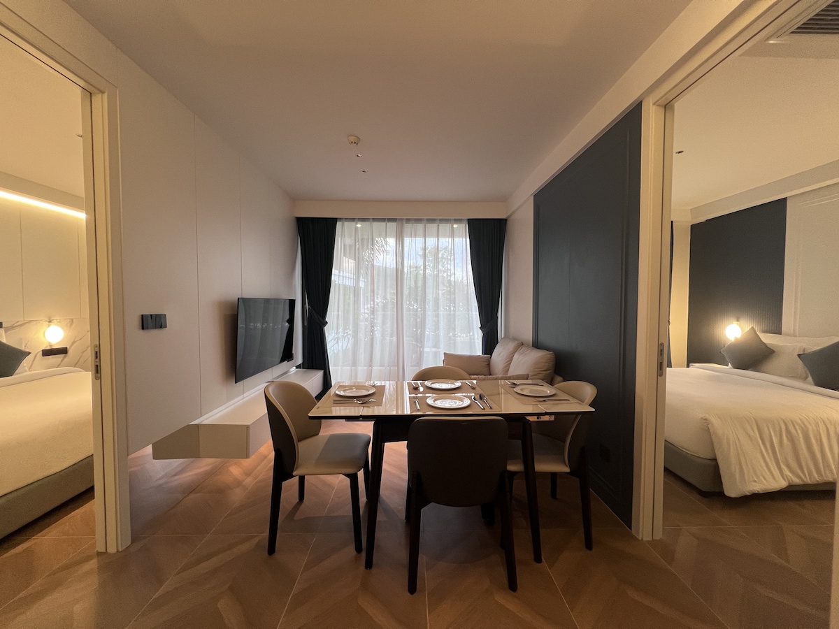 Nehir manzaralı (2 ayrı banyo) bu 65 metrekarelik 2 yatak odalı daire, tatil köyünün sessiz bir bölgesinde yer almaktadır ve yemyeşil bir nehir manzarasına sahiptir. Geniş çift balkon tasarımı, doğal ışığın ve esintinin serbestçe akmasına olanak tanır. Balkonun bir tarafında, esintide zarif bir çiçek kokusu yayan ve her konaklamaya benzersiz bir tropikal tatil atmosferi katan çiçek açan Tay yumurta çiçeğinin (Frangipani) manzarası vardır. Oturma odası ve iki yatak odası iyi düzenlenmiş, çift banyo mahremiyeti ve konforu artırıyor, alan açık ve yaşanabilir, aile seyahati veya uzun süreli yaşam için uygun. Sabah kahvenizin tadını balkonda, akan nehir ve çiçeklerin kalıcı kokusuyla çıkarın; geceleri sessiz ve özel iç mekâna dönün, koşuşturmacadan uzakta dinlendirici bir anın tadını çıkarın. Doğal manzara, mahremiyet ve yüksek kaliteli bir yaşam deneyimi ile sessiz bir ortam tercih eden aileler, çiftler, balayı çiftleri veya uzun süreli misafirler için ideal bir seçimdir.Bu benzersiz, aile dostu evden anılar.