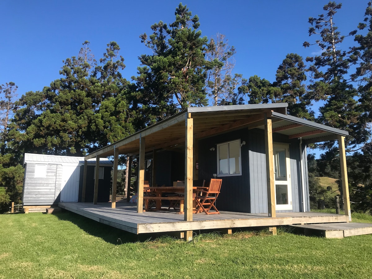 Yerli çalı ve tam mahremiyetle çevrilidir, Whangapoua Limanı'na bakmaktadır ve plaja 200 metre yürüme mesafesindedir. Sabah güneşin doğuşunun tadını çıkarın ve yaşam ve uyku alanlarını birbirine bağlayan güvertede tüm gün güneşin tadını çıkarın. İki kulübe, birinde queen yatak, oturma/yemek alanı ve diğer mutfaktan oluşur. Açık havada ayrı bir duş, sifonlu tuvalet ve küvet müstakil. Mutfak: Buzdolabı/dondurucu, kahve presi, elektrikli kızartma tavası