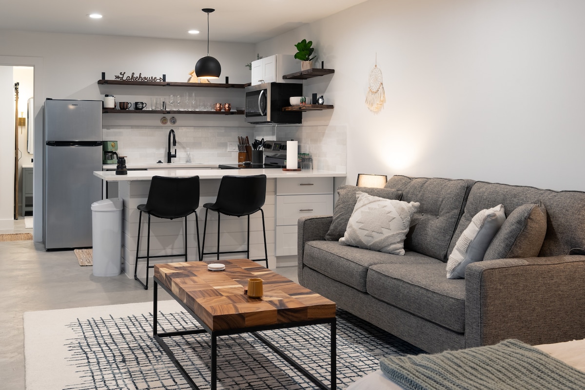 BOAT RENTAL, STAND UP PADDLE BOARD, AND KAYAK RENTALS NEAR FROM SUITE. Our luxury studio is located in one of Lakeway’s most popular South Shore neighborhoods, just minutes from the lake. Walk to the marina or take a quick 30-second drive—it’s your choice. After a long day on the lake, kick off your shoes and relax in your newly renovated luxury studio. With a full kitchen, big-screen TV, and blackout shades, you’ll sleep soundly and be ready for your next lake adventure.