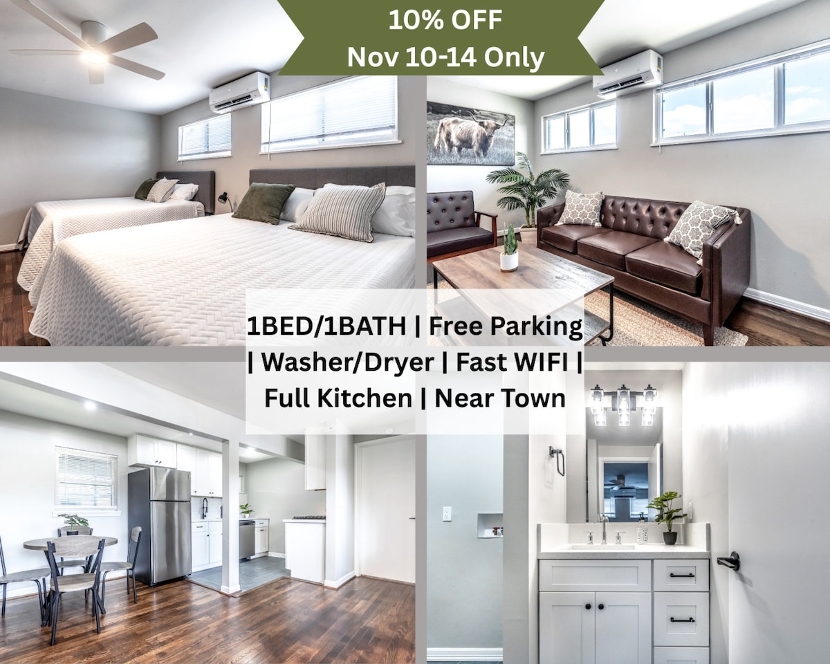 ✔ Yürüme puanı 95 + (kafeler, yemek, alışveriş vb. için yürüme mesafesinde). ✔ Tam donanımlı + donanımlı mutfak ✔ Hızlı kablosuz internet bağlantısı ✔ Tuş takımıyla kendi kendine giriş ✔ Akıllı HDTV. ✔ Klima + Isıtma ✔ Güvenli Semt ★ Harika Kurumsal Konut ★ 10 dakika: → Müzeler, sanat galerileri, alışveriş merkezleri, yerel kahve dükkanları ve şehrin en iyi restoranları. Arabayla 15 dakika mesafede → Teksas Tıp Merkezi, Rice Üniversitesi, şehir merkezi, Greenway Plaza ve Galleria. SİGARA İÇİLMEZ Sağ üst köşedeki simgesine tıklayarak kaydımı favoriler ❤ listenize ekleyin.