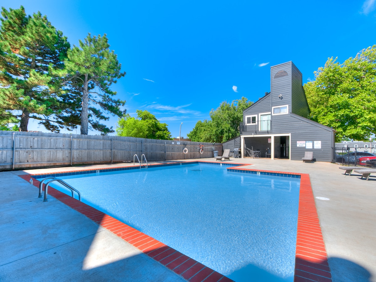 Anma Günü ile İşçi Bayramı arasında havuz erişimi olan dinlendirici 1 yatak odalı konut. Mükemmel kaçış noktanız! Rahat bir çift kişilik yatak, akıllı TV ve tam donanımlı mutfak içeren bu şık 1 yatak odalı, 1 banyolu dairede dinlenin. Yemek, alışveriş ve otoyollara yakın topluluk havuzuna ve sessiz bir ortama erişimin keyfini çıkarın. Huzurlu bir kaçamak veya iş seyahati için mükemmel! Rezervasyon yapmak için en az 21 yaşında olmanız gerekir.