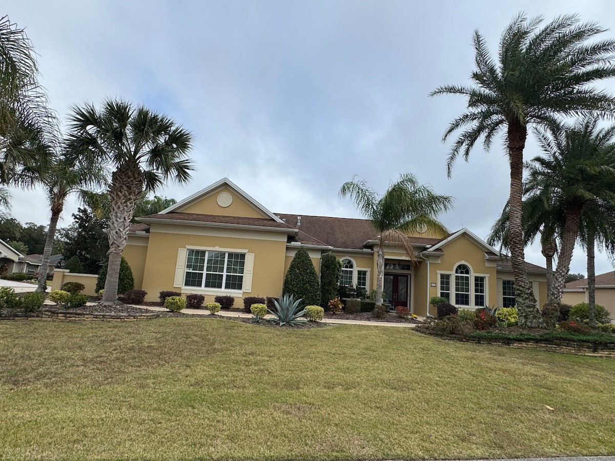 Harika bir konum! Tuzlu su havuzu ve jakuzisi olan güzel 2 yatak odalı 2 banyolu bir ev. Ses sistemli 77 inç TV ve 2 araba garajı/golf arabası. Oturma alanına sahip büyük ekran TV ve kuş kafesinin dışında ikinci bir oturma alanı bulunan açık hava barı. Her iki yatak odasında da TV var. Harika bir açık hava yaşamı! Golf arabası ile her şeye birkaç dakika: Brownwood 12 Sumter 16 Sawgrass 19. 4 şampiyon golf ve 7 exec golf sahası 5 -10. Publix, Walmart 5 dakika Golf arabası 2022 Yamaha dahil! Sigara içmek yasaktır.
