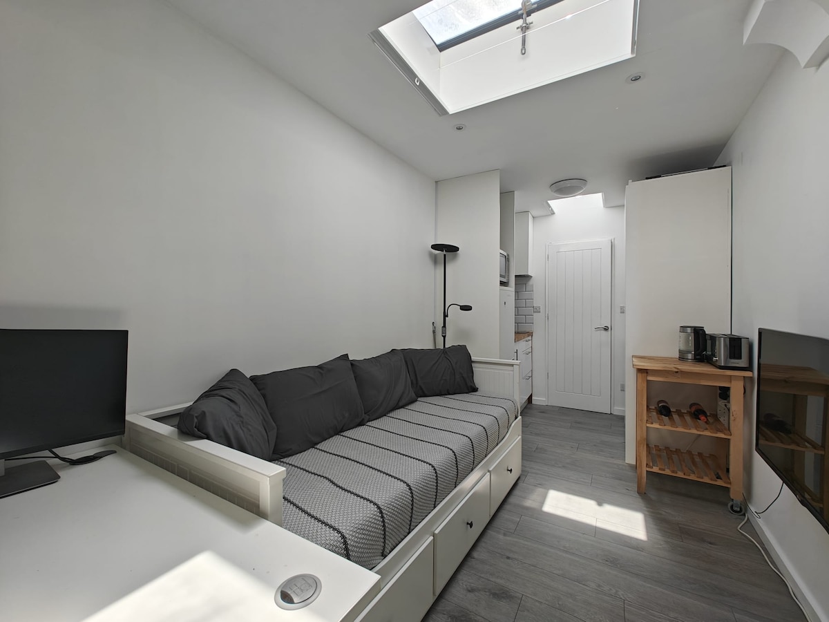 2 tavan penceresi, pencere, tam donanımlı mutfak (mikrodalga fırın, ekmek kızartma makinesi, su ısıtıcısı), duşlu özel banyo, büyük rahat çekyat (2x1,5 m), masa, TV, gardırop bulunan aydınlık ve modern 15 m² stüdyo. Sessiz bir bölge, Londra Köprüsü (15 dakikada bir 12 dakika), Victoria, Kanada Suyu vb. ile doğrudan bağlantıları olan Norwood Junction'a 7 dakika yürüme mesafesindedir. Aldi, Tesco, barlara ve yerel mağazalara yakındır. Londra'nın merkezine hızlı bağlantıları olan iş veya eğlence için mükemmeldir.
