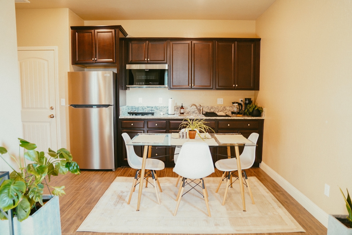 Gelin ve Visalia, Kaliforniya'nın göbeğindeki yakın zamanda yenilenmiş stüdyo dairemizde kalın. Stüdyo, müstakil garajımızın üzerinde bulunmaktadır. Büyüleyici semtimiz merkezi bir konumda ve keşfedilmesi eğlenceli, 20. yüzyılın başlarında inşa edilmiş benzersiz evlerle dolu ve Visalia'nın ilginç merkezine yürüme mesafesinde. Son varış noktanıza giderken yalnızca bir geceliğine burada durmaktan veya yakındaki Kaliforniya güzelliğinin bolluğunu keşfederken bu sessiz küçük noktayı eviniz yapmaktan çekinmeyin.