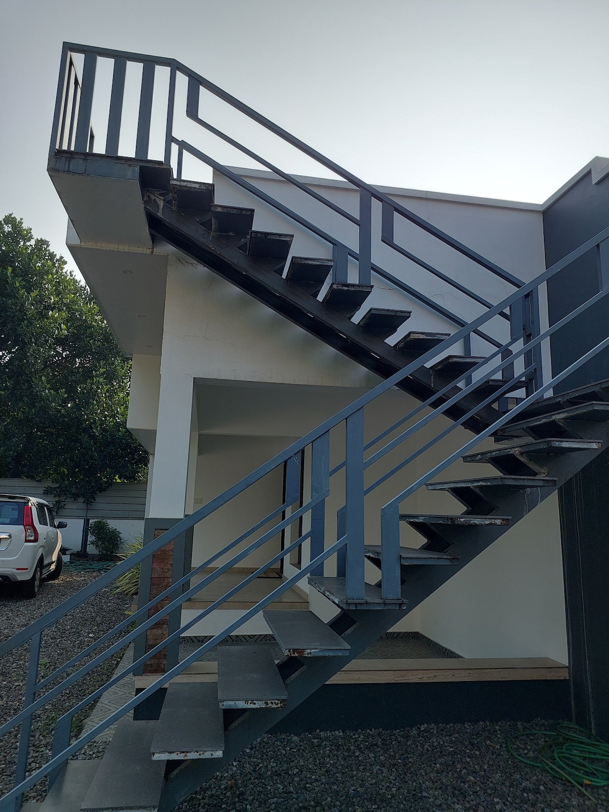 The house is located exactly opposite to KAMCO,Mala. Set in a serene environment,its just 8 kms from kodungallur Bhagavathy temple. It is a mint fresh 2 story 2 bedroom property with all basic facilities like a fridge,cot with mattress in both the bedrooms,TV,washer and a couple of sofa sets.Geyser ensures hot water in bathrooms.The house is perfect for travellers looking for a quiet place away from the city bustle.The highlight of the house is the waterfront view from the intermediate floor