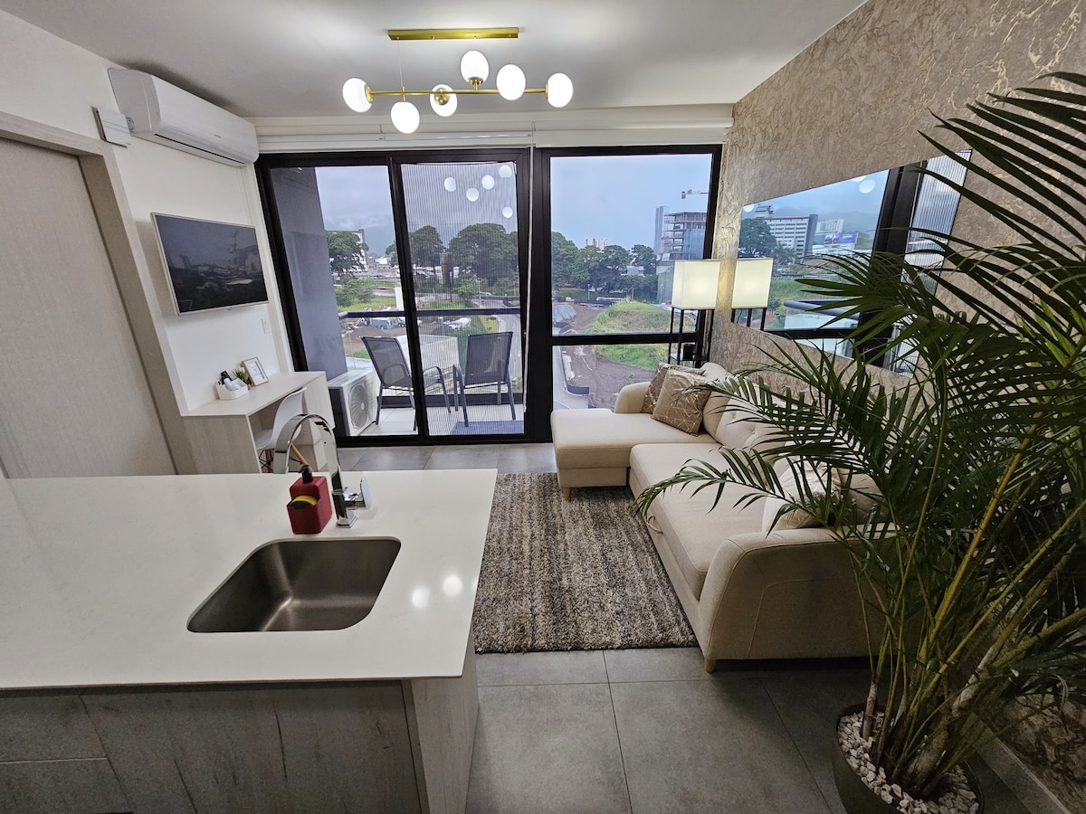 Núcleo Sabana, San José'nin kalbindeki modern ve samimi inzivanıza hoş geldiniz! Bu şık daire, konforlu ve rahat bir konaklamanın keyfini çıkarırken canlı şehri keşfetmek isteyen seyahatseverler için mükemmeldir.