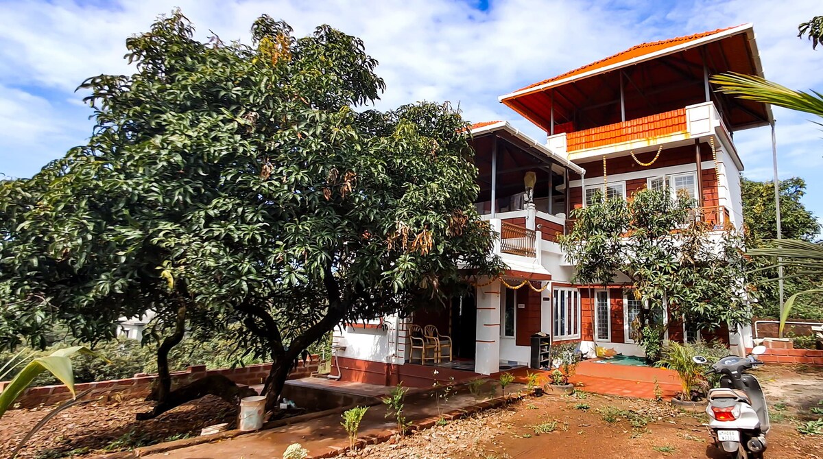 Yemyeşil alanların ortasında, sakin bir plaja sadece 900 m uzaklıkta, rahat 2BHK. Klimalı odalar + 10 misafir için büyük salon. Teras yıldızlarını izleme, kuşların cıvıltılarıyla geçen sabahlar ve huzurlu gecelerin tadını çıkarın. Mango bahçelerini, yakındaki tepeleri keşfedin veya bir kitapla rahatlayın. Tam donanımlı mutfak, evcil hayvan dostu kapalı alan, açık oturma alanı. Ev şefinin lezzetli deniz ürünleri. Sakinlik, konfor ve bir parça sahil cazibesi arayan aileler ve doğaseverler için mükemmeldir.