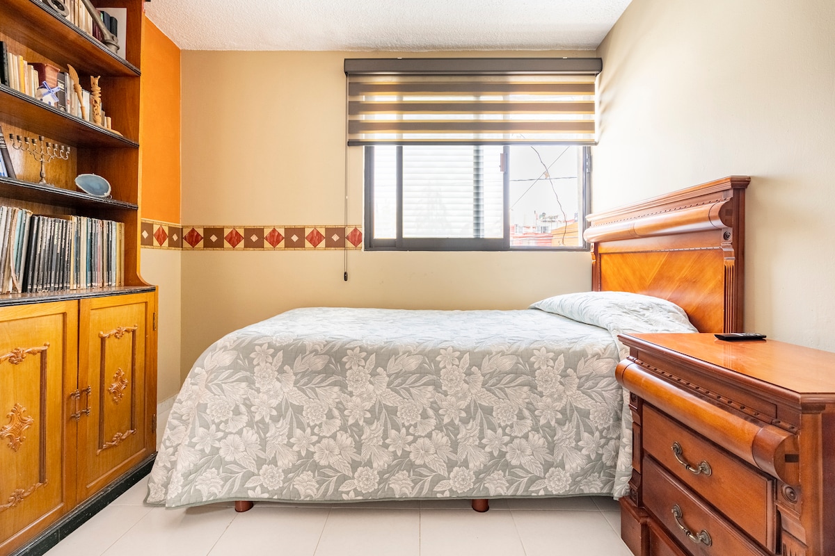 Dinlenmek, çalışmak ve rahatlamak için bu benzersiz ve konforlu yerin tadını çıkarın. IPN, Lindavista alışveriş merkezleri ve hastane bölgesine arabayla 5 dakika mesafedeyiz; 2 dakikalık yürüyüş mesafesinde kafeler, restoranlar ve her türlü hizmeti bulabilirsiniz ve koloninin ana parkı sadece 2 blok ötede. Gizliliğinizi korumak için, odanın kendi banyosu ve tüm binaya harici ve bağımsız erişimi vardır ve hiçbir ekipman, mobilya veya mutfak eşyası paylaşılmaz.