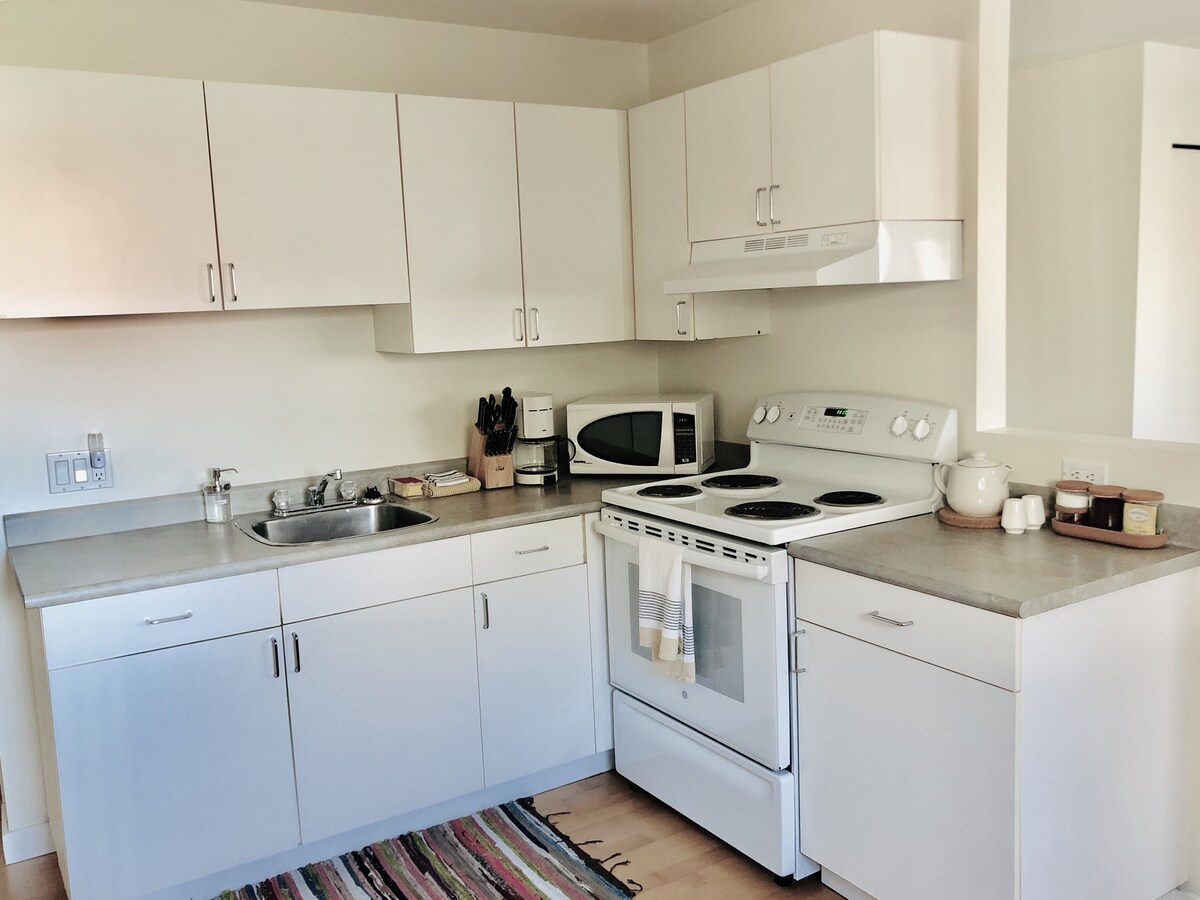 Basit, modern konfor. Harika bir konumda tatlı stüdyo Ucluelet, Big Beach, Black Rock ve Wild Pacific Trail'in mağazalarına ve kafelerine sadece 5 dakika yürüme mesafesindedir. Pamuklu çarşaflar, mutfak malzemeleri (su ısıtıcısı, mikrodalga fırın, ekmek kızartma makinesi, mini buzdolabı) ile yerel kahve ve çay ile konforlu queen size yatak.