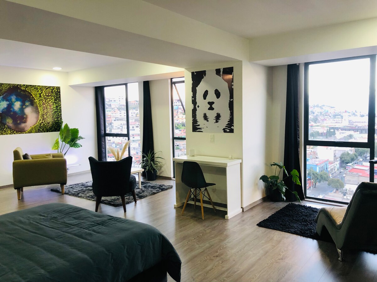 Bu sessiz ve merkezi konaklamanın sadeliğinin keyfini çıkarın. Toluca'nın merkezinde en iyi dekorasyon. Central Alameda'nın yanında. Toluca şehir merkezine iki blok uzaklıkta. Nemesio Diez “Bombonera” stadyumuna 4 blok uzaklıktadır. Binanın içinde restoranlar, sinema, kahve, Smart Fit spor salonu ve daha birçok olanak bulabileceğiniz bir alışveriş meydanımız var.