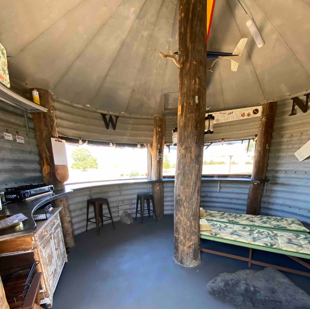 Yeniden tasarlanmış tahıl silosu! Sevimli Glamping Silo'muz çiftler için mükemmel bir kaçış noktasıdır. ❤️ Sunduğumuz hizmetler: * Şilteli iki çok rahat retro kamp yatağı - * Barbekü ve açık hava mutfağı * Çift gazlı Primus ve aşçı kıyafeti * Kendi özel ateş çukurunuz * Odunlu ısıtıcı * Güneş enerjili ışıklar * Telefon şarjı * İçme suyu * Tabureler ve sandalyeler. * Sineklikler ve kafeterya jaluzileri * Ortak tuvalet ve duş kullanımı - kısa yürüyüş mesafesinde. * Evcil hayvanlar veya çocuklar için uygun değildir. * Kendi yastıklarınızı, uyku tulumunuzu ve Esky'nizi getirin.