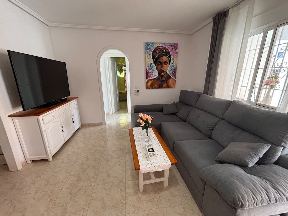 La Mata🏝️ 'da 2 Yataklı Büyüleyici Vaha Bu tamamen yenilenmiş 2 yatak odalı cennette şık bir şekilde dinlenin! Zarif iç mekanlar ve güneşli bir bahçe, enerji depolamak için mükemmel bir inziva yeri oluşturur. İspanya'nın en uzun, Mavi Bayrak sertifikalı altın kumları olan iki güzel La Mata plajına sadece 20-25 dakikalık manzaralı bir yürüyüş. Mağazalar ve restoranlar yakındır, bu da günlük hayatı kolaylaştırır. Beklemeyin, tercih ettiğiniz tarihleri güvence altına almak için hemen rezervasyon yapın! NRA CSV: 09999907182889CA89F873F8