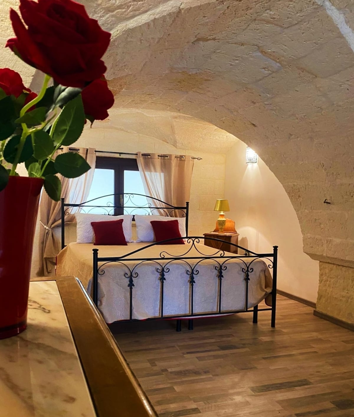 Geleneksel trulli içine oyulmuş bu eşsiz mekânın kendine ait bir cazibesi vardır ve Itria Vadisi'nin gerçek ruhunu deneyimlemenizi sağlar. Eski bir çilek üzümü çardağından giriyorsunuz. Mutfak ve banyo oyuklarda yer alırken, yemek ve uyku alanları bir Saracen trullo ve uzun koni şeklinde bir trullo'dadır. Özel veranda ve yakınlardaki sonsuzluk havuzu, vadi ve Ceglie Messapica'nın silüetinin manzarasını sunuyor.