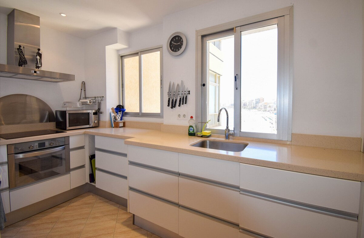 Los Pacos semtinde, sahile 1,3 km mesafede, merdivenle birinci katta tek yatak odalı daire, klima, kanepeli oturma odası, 55" akıllı TV, ücretsiz kablosuz internet bağlantısı, çamaşır makinesi, buzdolabı, mikrodalga fırın, ekmek kızartma makinesi, kahve makinesi, çay makinesi
