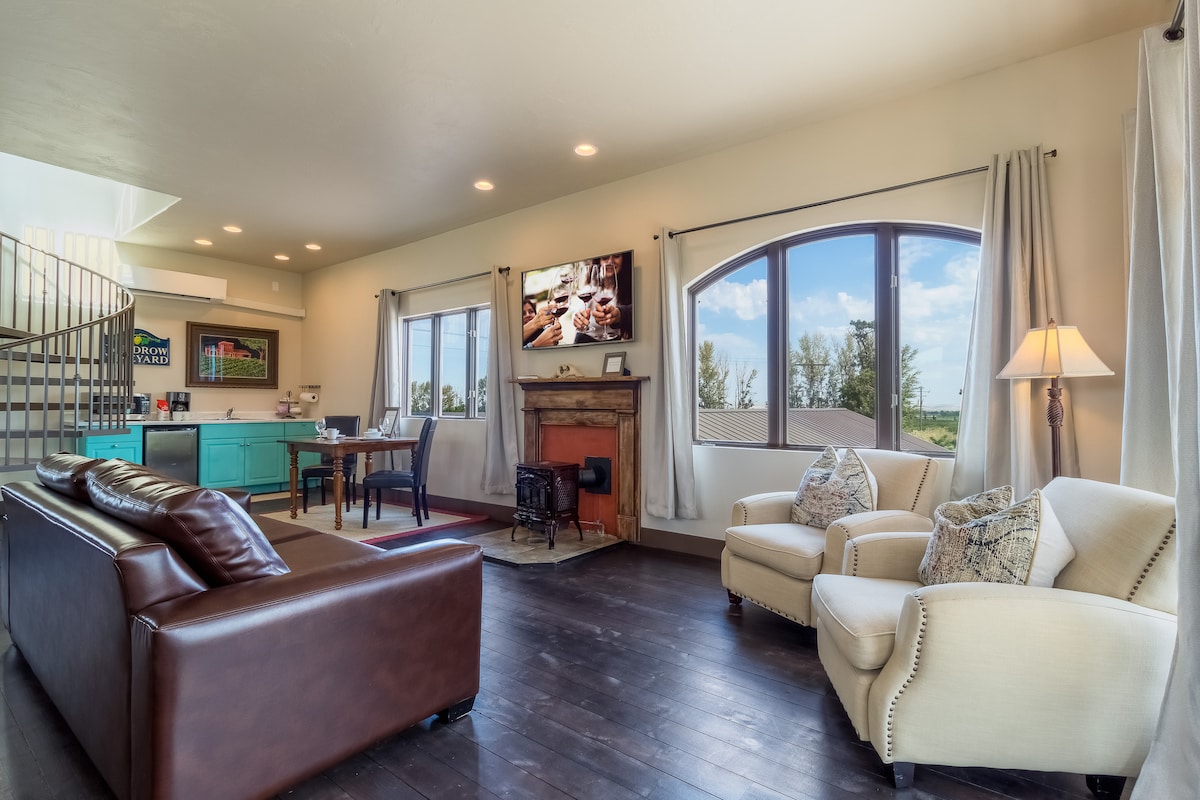 Şarap ülkesinin kalbinde romantik bir kaçamak! Bu huzurlu, şık mekânda arkanıza yaslanın ve rahatlayın. Queen boy yatak ve Roku'lu iki düz ekran TV bulunan, güzel döşenmiş tek yatak odalı bir daire. Girişin yakınında özel park yeri olan sessiz bir semtte. Geliş gününde gönderilen kodla kendi kendine giriş kaydı. Masa ve sandalyelerin bulunduğu özel veranda alanı. İki kişilik spa, dinlenmek ve manzarayı izlemek için ideal bir yerdir. Ücretsiz kullanım için elektrikli araç şarj cihazı. Küçük, iyi huylu köpekler kabul edilir.