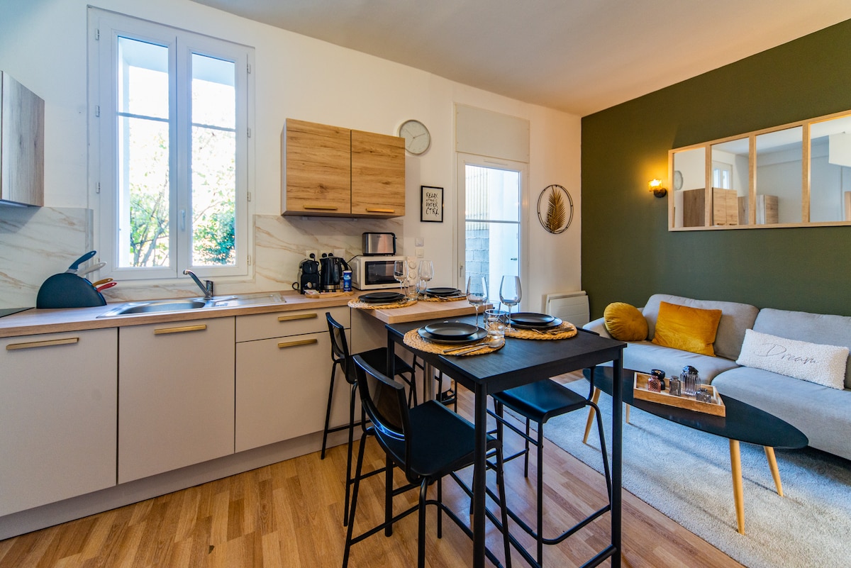 Tours'un tarihi merkezinin kalbinde, Nisan 2025 'te yenilenen, 15. yüzyıldan kalma bir binada yer alan büyüleyici daire. Güzel cepheleri ve dar sokakları ile en güzel semtte yer alan Place Plumereau, restoran, mağaza ve Tours'un dikkat çekici yerlerine yakındır. Her şey 5 dakika içinde yürüme mesafesinde. Yatak takımı, parlaklığı, konforu, dekoru ve konumu nedeniyle bu rahat yuvayı takdir edeceksiniz. Romantik bir kaçamak veya iş seyahati için idealdir.