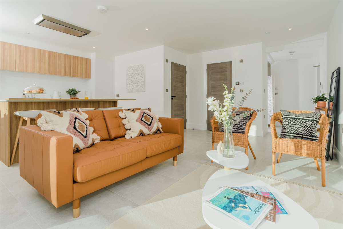 Jam First, Lusty Glaze, Porth ve Tolcarne plajlarına 10 dakika yürüme mesafesinde ve Newquay Şehir Merkezi'ne 15 dakika yürüme mesafesinde büyük, modern, 1 yatak odalı bir dairedir. 2 ft süper king veya 2 tek kişilik yatak seçeneği sunuyoruz. Tüm ev konforuna sahip geniş bir açık planlı yaşam alanı, özel bir verandalı alan, geniş bir ıslak oda, geniş kapılar ve her yere düz erişim vardır, bu da dairemizi tüm misafirler için uygun hale getirir. Dairenin hemen dışında arazi otoparkı sunuyoruz. Erişim anahtar kutusuyla sağlanır.