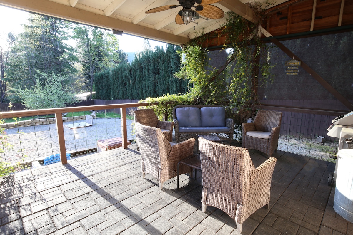 Discover the charm of our 1800 sq ft family-friendly cottage in the heart of the historic railroad town of Dunsmuir. This retreat features cozy, beautifully curated spaces, kid-friendly hangouts, and a chef's kitchen. Step out back and be swept away by the enchanting and private outdoor haven. Enjoy the convenience of being close to downtown restaurants, rivers, lakes, hiking, & waterfalls, all while being just 15 minutes from Mt. Shasta ski park. Making this your perfect all season getaway.