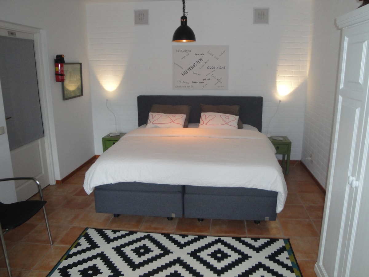 Şık oda - kahvaltı yerimizde huzurun tadını çıkarın. Birkaç dakika içinde Enschede şehir merkezinin göbeğindesiniz. Şehri ve çevreyi keşfetmek için yürümek veya bisiklete binmek için idealdir. Tüm (elektrikli) bisikletleri güvenli bir şekilde saklamak için bir garaj mevcuttur. İsteğe bağlı olarak, daha sonra sizin için hazırlayacağımız ve istediğiniz zaman kullanabileceğiniz bir kahvaltı sepeti (25 €) sipariş edilebilir. Havlular/mutfak havluları verilir.