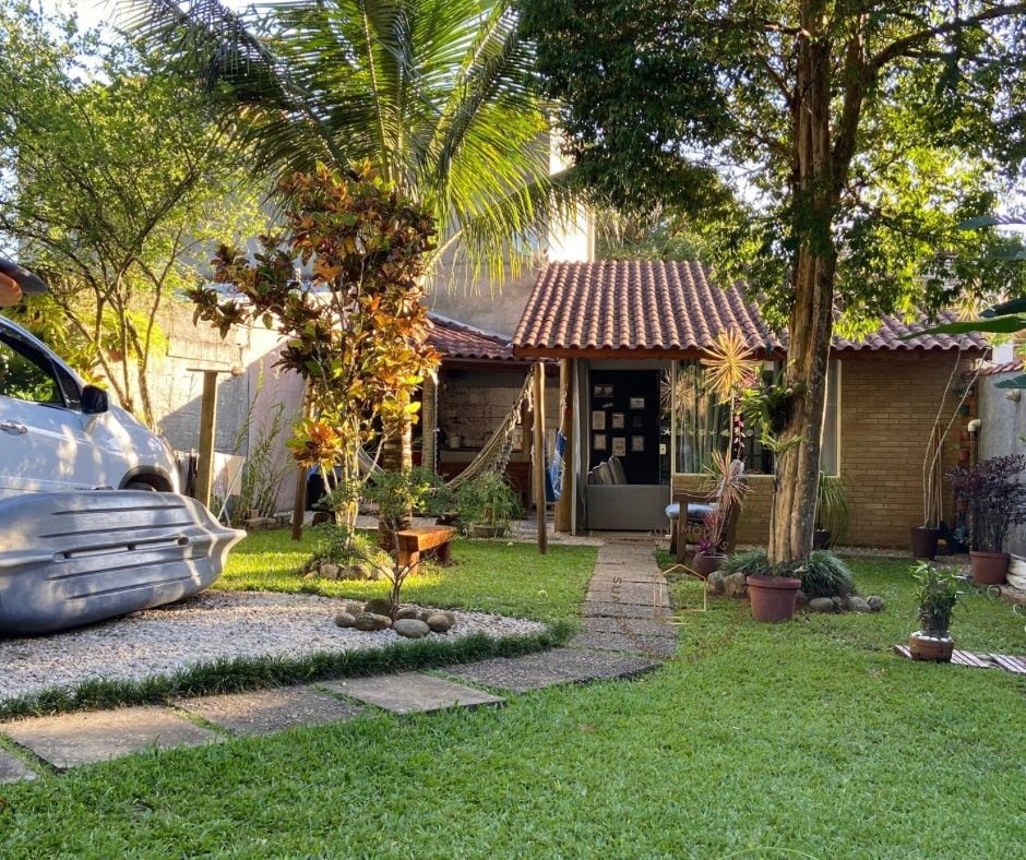 Deniz ve dağ arasında, bu minimalist, çok işlevli dağ evi yaklaşık 2 yıldır benim evimdi, şimdi sizi birkaç günlüğüne Atlantik Ormanı ve denizle çevrili olma hissini yaşamaya davet etmek istiyorum. Tam bir mahremiyetle yemyeşil bir doğa temas deneyiminde ferahlayabileceğiniz bir yer. Gerçek şu ki, mutlu olmak için çok az şeye ihtiyacımız var ve bu mevsimi bu küçük evde geçirdim ve bana bu öğrenmeyi sağladı.
