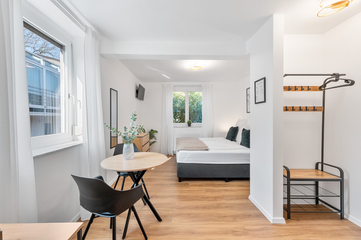 Bahçe manzaralı dairemize hoş geldiniz. Daireyi sizin için yeni yeniledik ve konforlu bir şekilde döşedik. 28 m²'lik dairede 1,60 m'lik bir yatak ve duşlu banyo bulunmaktadır. Ayrıca akıllı TV ve hızlı internet bağlantısı da mevcuttur. Sakin bir yerleşim bölgesinde, sokağa yakın bir yerde park yeri mevcuttur ve istediğiniz zaman kendi kendine check-in yapabilirsiniz.