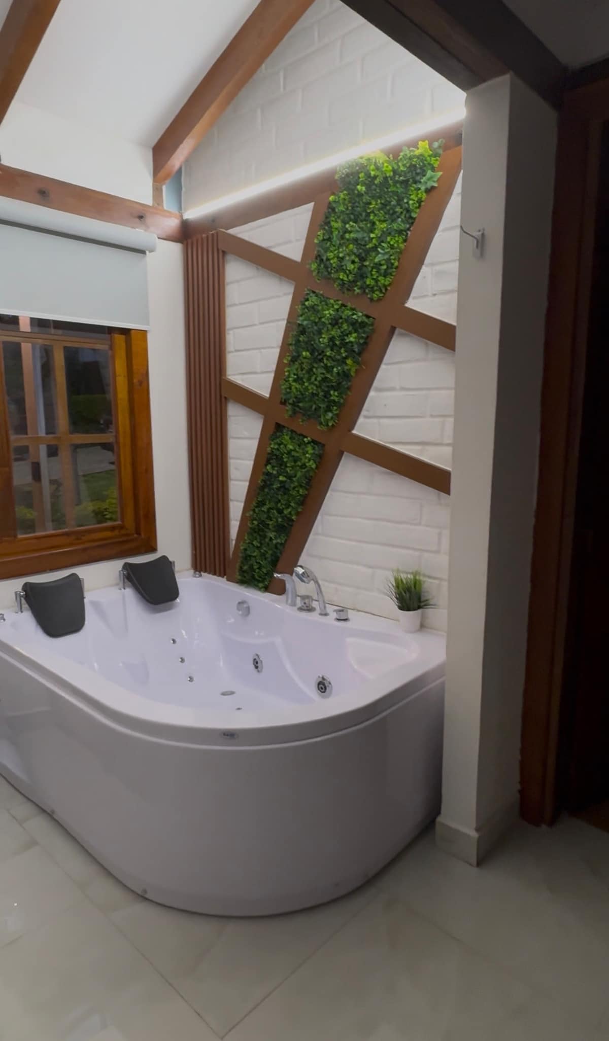Disfruta de una suite abierta y luminosa con una vista inigualable a la vegetación de Baños. Equipada con una cómoda cama de 2.5 plazas, sofá cama, cocina, comedor, baño privado y una pequeña sala para relajarte. Ideal para parejas, familias pequeñas o viajeros que buscan confort y naturaleza en un solo lugar. ¡Ubicación privilegiada y ambiente acogedor!