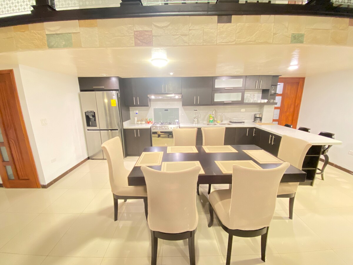 Baños de Agua Santa'daki 3 yatak odalı muhteşem Airbnb evimizle lüks bir cennete kaçın. Nefes kesen dağ manzaralarının, nehre erişimin ve açık hava eğlenceleri için barbekü alanının keyfini çıkarın. Tam donanımlı bir mutfak ve özel otoparkıyla evimiz aileler, çiftler veya arkadaş grupları için mükemmeldir. Baños şehir merkezine ve Pailón del Diablo ile Treehouse gibi doğal cazibe merkezlerine arabayla kısa bir mesafede olan Airbnb evimiz, bir sonraki maceranız için mükemmel bir seçim. Şimdi rezervasyon yapın ve Baños'un güzelliğini deneyimleyin!