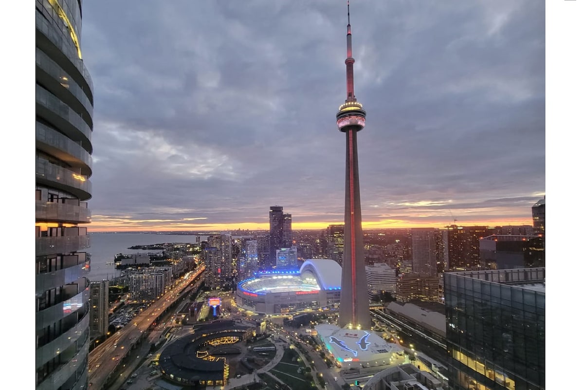 Maple Leaf Meydanı'nın hemen üstünde, Scotiabank Arena'ya birkaç adım mesafede, balkondan CN kulesi ve Toronto'nun kalbini doğrudan gören bu süit, ailenizin dinamik, muhteşem Toronto'yu keşfetmesi ve katılımı için mükemmel bir merkezdir. Merkezi konumda; metro ve havaalanına giden ekspres trenin hemen yanında; tam mutfak; çamaşır makinesi/kurutucu; bulaşık makinesi; Nespresso kahve; fiber; 75" TV; iPhone/Android yayın; Netflix/Prime Video dahil.