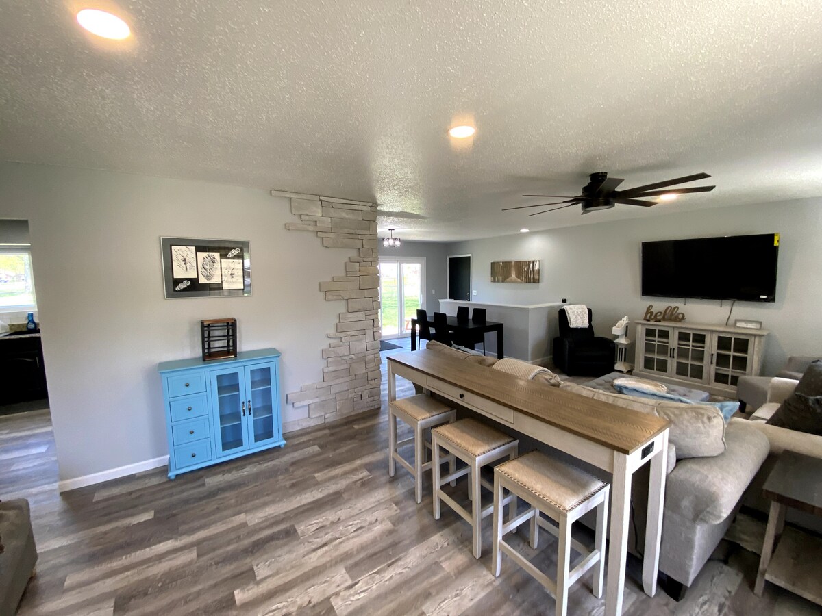 Dogtown'daki aile toplantıları için yapılmış aydınlık 4 yatak odalı inzivamıza hoş geldiniz. Büyük pencereler, modern avize ve şık sanat eserleriyle açık mutfak/oturma/yemek alanının keyfini çıkarın. Kaliteli tencere/tavalar ve Zwilling bıçak setiyle yemek pişirin, ardından Breville Barista Express'te espresso çekin. 8 kişi konaklayabilir (şişme yatakla 10 kişiye kadar): King boy Nektar + 3 Queen boy hibrit (Casper/sealy). Ebeveyn banyosu duşakabin. Hızlı kablosuz internet bağlantısı, 77 inç LG 4K TV. 2 arabalık garaj + büyük garaj yolu + 220V elektrikli araç şarjı. 6 dakika Hayvanat Bahçesi, 7 WashU, 9 SLU; hızlı I-64/I-44/I-170.