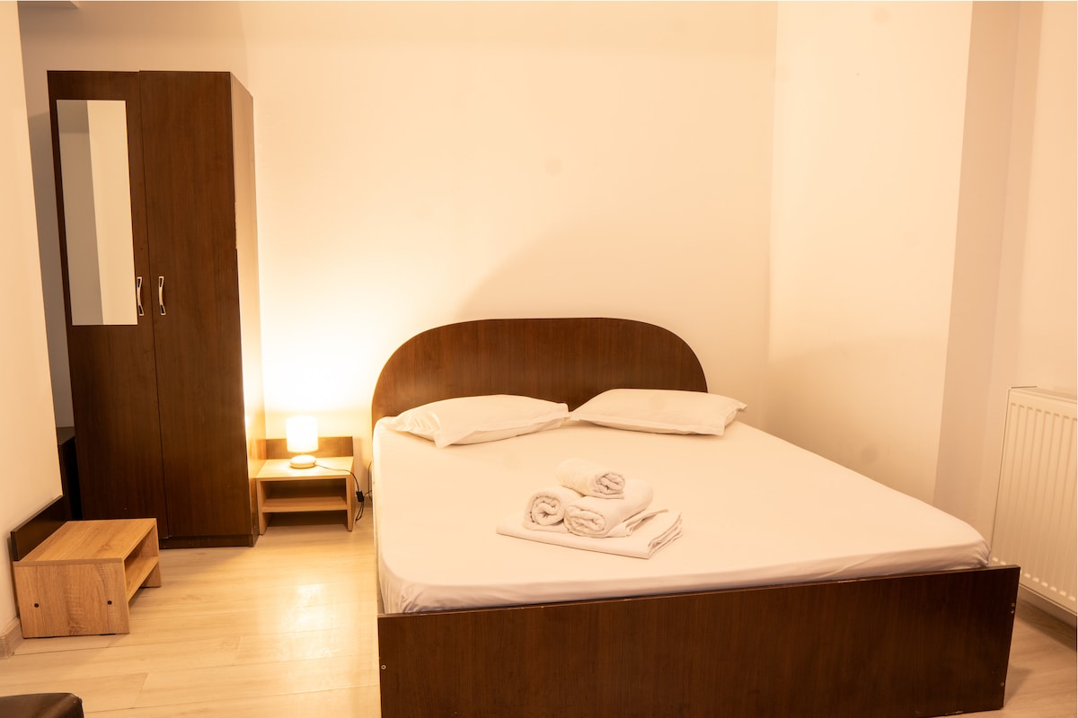 Bükreş'in göbeğindeki modern ve misafirperver oda, şehri keşfettiğiniz bir günün ardından dinlenmek için mükemmel. Konforlu çift kişilik yatak, yeni tasarım, hızlı kablosuz internet bağlantısı, klima ve özel banyo. Ulaşım, restoranlar ve başkentin canlı yaşamına yakın. Kaygısız bir şehir kaçamağı için ideal bir seçim!