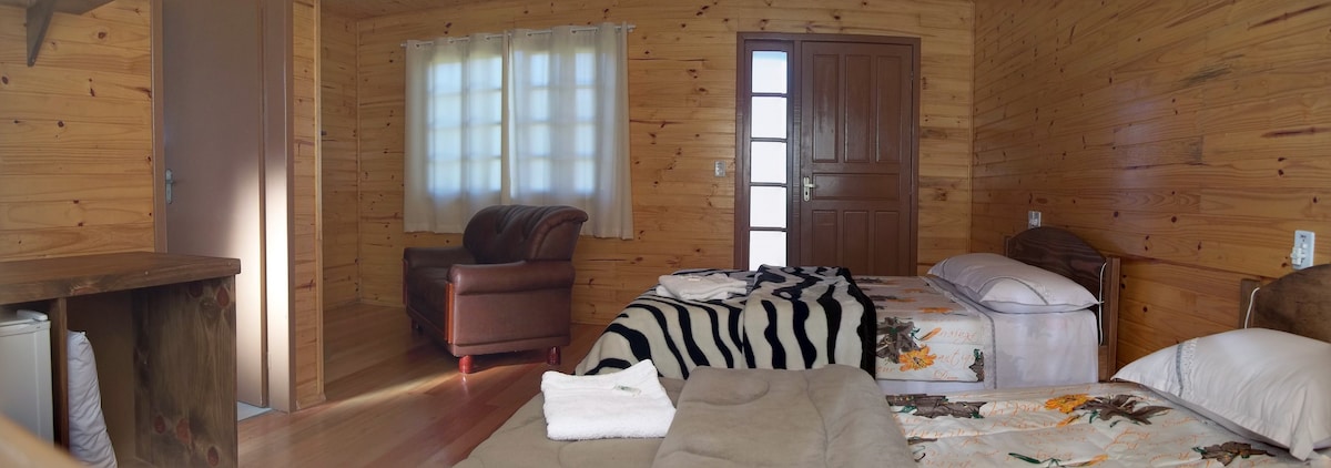 Pinheiros Sezonluk Kulübesi'ne hoş geldiniz. Bu alan, aileniz için ailemiz tarafından büyük bir özenle yapılmıştır. Huzurlu bir ortamda rustik bir mimariye sahip olan bu yer, doğa ve hayvanlarla temas kurmanızı sağlar ve yanından geçen nehir, huzurlu bir uyku için ekstra bir çekicilik katar. Ayrıca ziyaretçilerin kendi yemeklerini hazırlayabilmeleri için mutfak da bulunmaktadır. Ayrıca, dağ evinin arka tarafında, arazideki küçük şelale de bir başka cazibe merkezidir.
