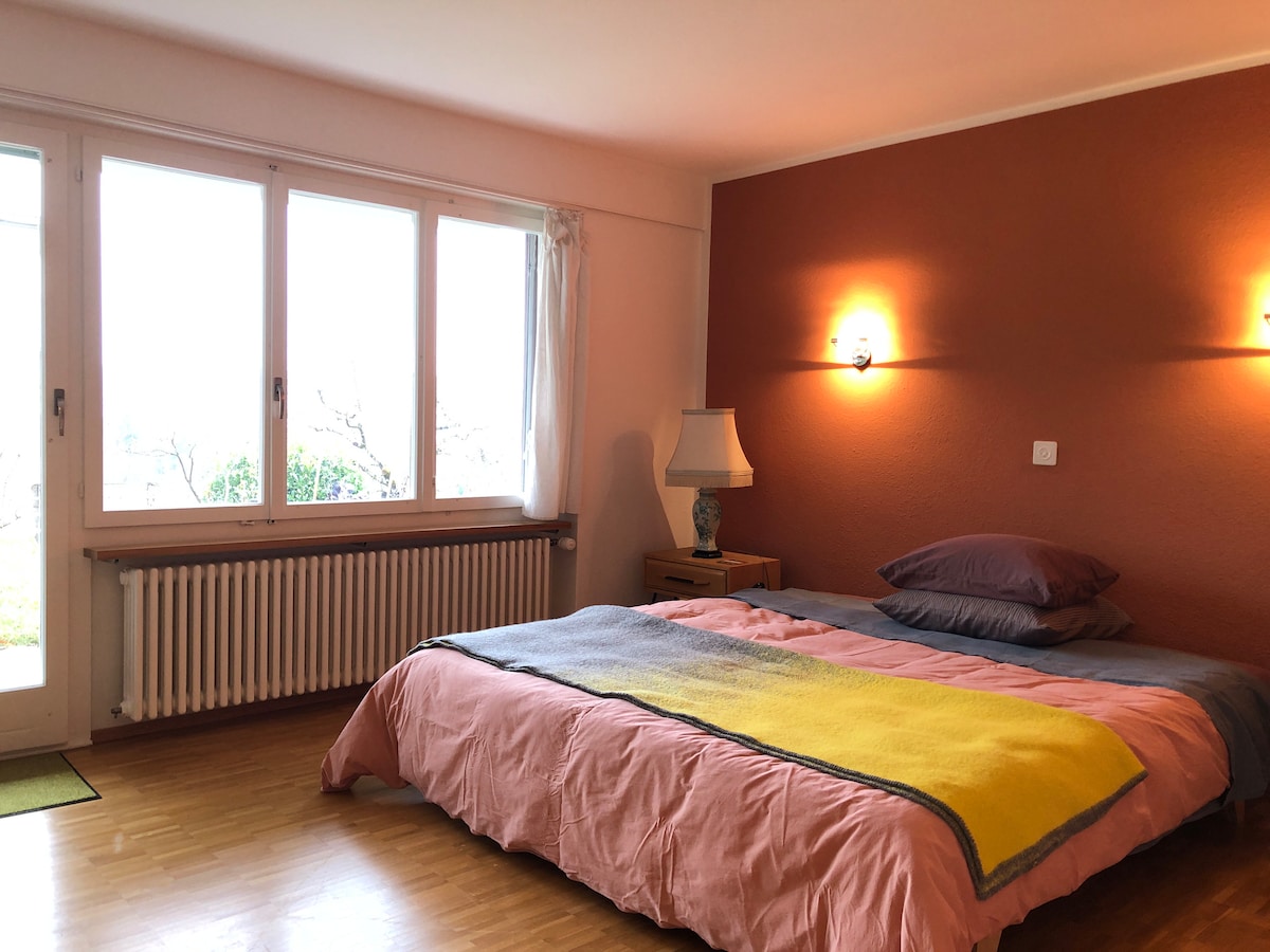 60'ların tarzında banyosu ve doğrudan bahçe erişimi olan aydınlık, sessiz bir oda. Kendi buzdolabı olan tam donanımlı mutfak-oturma odası, başka bir misafir odasıyla paylaşılır. Kapının önündeki yerel dinlenme alanına, Coop & çiftliğe 5 dakika yürüme mesafesinde. Opera binasına otobüsle 20 dakika, havaalanına doğrudan tren.