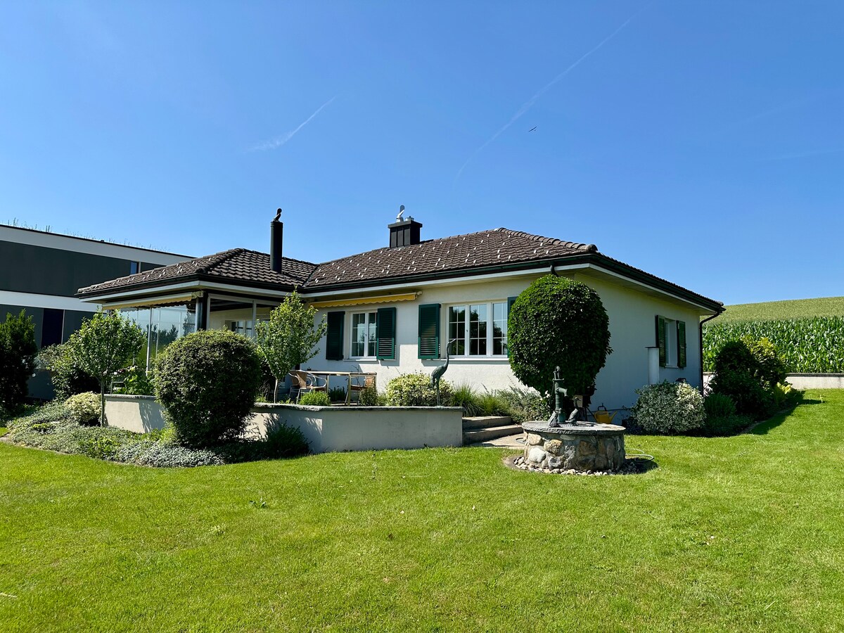 Zürih yakınlarındaki doğanın en iyisini keşfedin! Bu büyük (>200 m2) ev, toplu taşıma araçlarıyla Zürih merkezine sadece 30 dakika (arabayla 20 dakika) uzaklıkta huzur sunuyor. İyi donanımlı bir mutfağın, lüks banyoların, rahat bir oturma odasının ve barbekü ve bilardo masasının olduğu bir kış bahçesinin keyfini çıkarın. 9 kişiye kadar konaklayabilir. Alplerin önü açık manzarasına sahip bahçeyi keşfedin. Bisikletler sağlanıyor! Şehir rahatlığının dingin güzellikle buluştuğu doğa inzivamıza kaçın. Şimdi rezervasyon yapın ve biz uzaktayken evimizin keyfini çıkarın.
