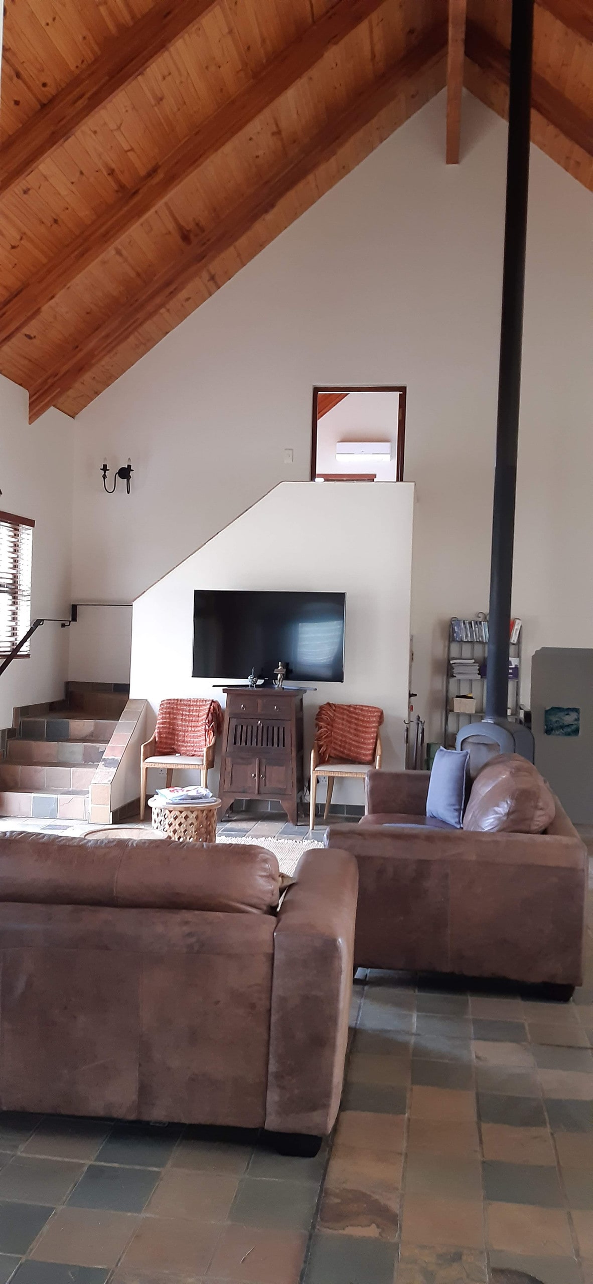 This is a unique, comfortable, fully kitted, self-catering house sleeping 8/10 people. Hidden in a quiet corner of our working farm it overlooks a pristine section of the Wilge River, with the famous waterfall and Nelson's Kop mountain providing spectacular scenery. Guests will be able to enjoy absolute peace, uninterrupted views and walks in almost every direction. Please note that the property is remote and the last 200m of the access road will require a high clearance vehicle.