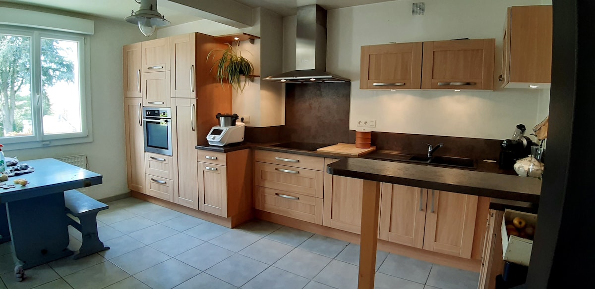 Gite 5 pers max (çocuklar ve bebekler dahil). Bu aile konaklama yeri tüm manzaralara ve olanaklara yakındır. gölet ve dinlenme salonu olan 2 hektarlık ağaçlık bir mülkte bulunmaktadır rezervasyona göre sauna kır evi zemin katta şunları içerir: Rahat oturma odasına açık 1 donanımlı mutfak 2 adet 90 cm yataklı 1 girinti üst kat: 1 yataklı 1 yatak odası 140 cm 1 adet 90 cm yataklı 1 asma kat Duşlu/tuvaletli 1 banyo konaklama yerinde kahvaltılar mevcuttur (isteğe bağlı) 10 €/kişi/gün