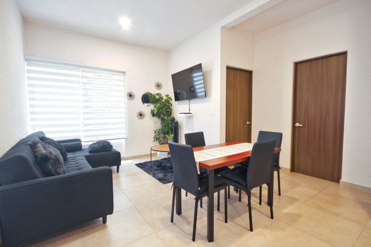 Misafir, konaklama yerinden çıkışınıza kadar hiçbir şeyin eksik olmadığından emin olan süper ev sahibinin özenli ilgisiyle, sıcak bir ev ortamı hissi veren bir alana sahip olacaktır. Konumu güvenli, merkezi, CDMX Havalimanı'na yakın, Palacio de los Deportes, Autodromo, Foro Sol gibi yerlere, hatta konaklama yerinin bulunduğu koloninin içinde yer alan Park'n Fly'a ve zengin Meksika yemeklerinin olduğu yerlere yakın.