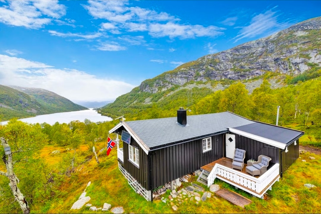 Suleskardveien'in hemen yanındaki dağlarda bir kulübe.