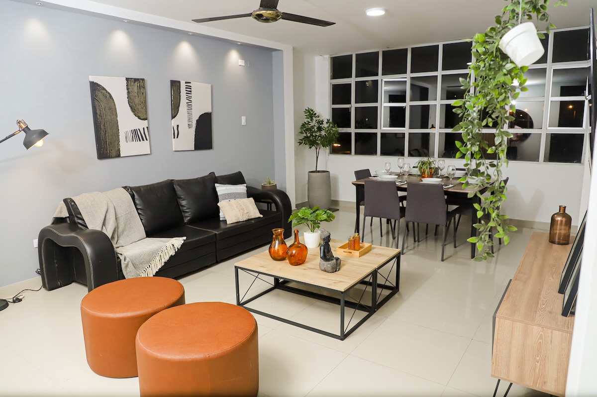 💫 Elegant & relaxing near Mayales Mall 🧘 🛋️ Living Area: Furnished, large TV, high-speed Wi-Fi, and balcony with mountain views 🏔️ 🍽️ Kitchen: Fully equipped with breakfast bar, fridge, and blender. 💦 Laundry: In-unit washing machine. 3 Bedrooms (all with AC ❄️): 🛌 Primary: Double bed, TV, closet, and private bathroom. 🛌 Secondary: Two rooms with double beds and closets. 🚿 Guest bathroom in the hallway. The perfect blend of comfort and style!