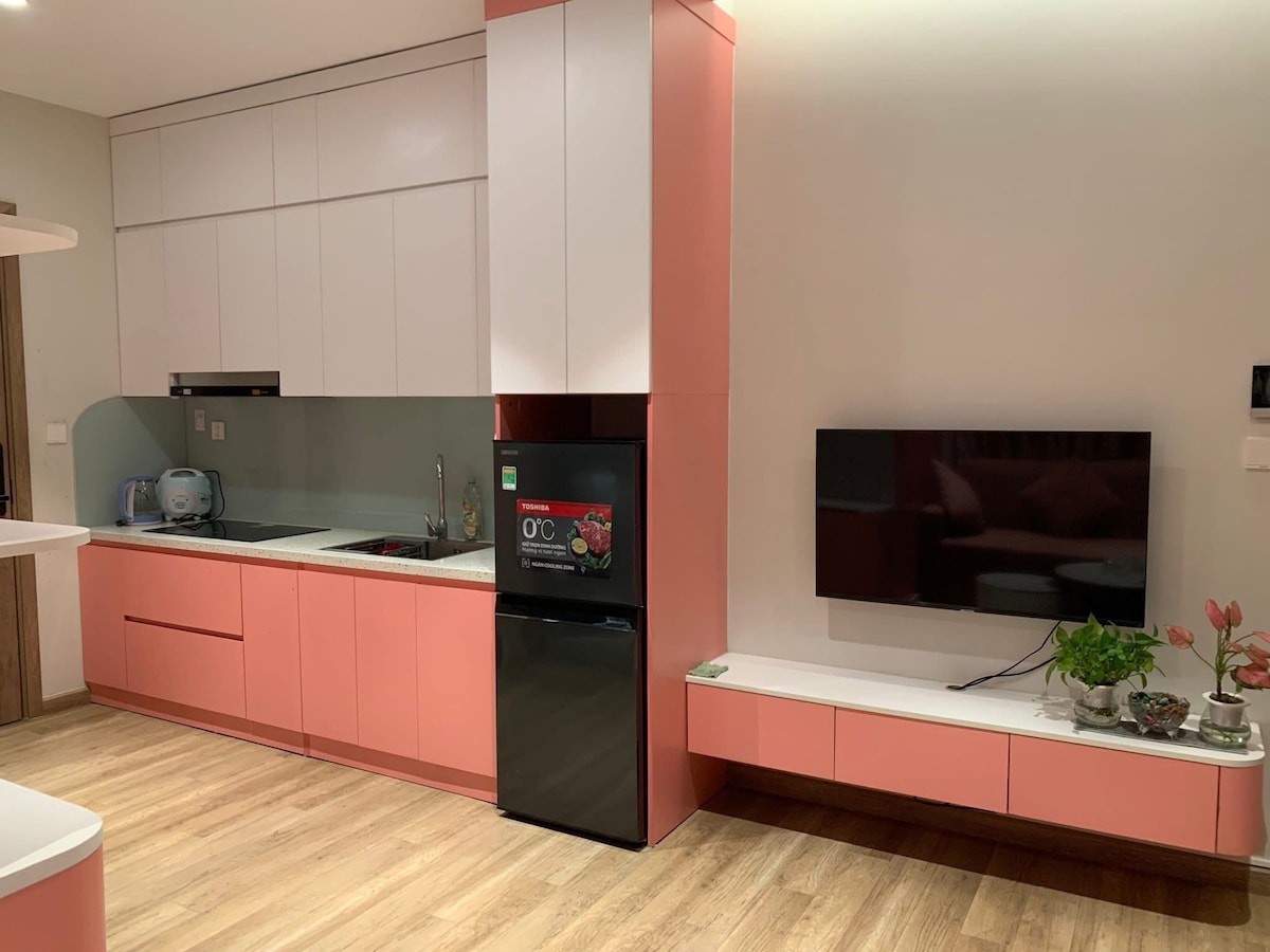 -The apartment has great view to the “Landscaping Lake” of Ecopark Grand, the vast field and it welcomes fresh sunshine in the morning -Fully equipped with smart TV, wifi, fridge, washing machine, kitchenware, cutlery utensils… -1 king bed & 1 sofa -Smart furniture like dinning table combined with wine cabinet, sofa extendable to large bed which make the apartment spacious yet comfortable. Why this Happy Haven is an “F HOME”? Friendly Family-like Fully furnished Filled up with morning sunshine
