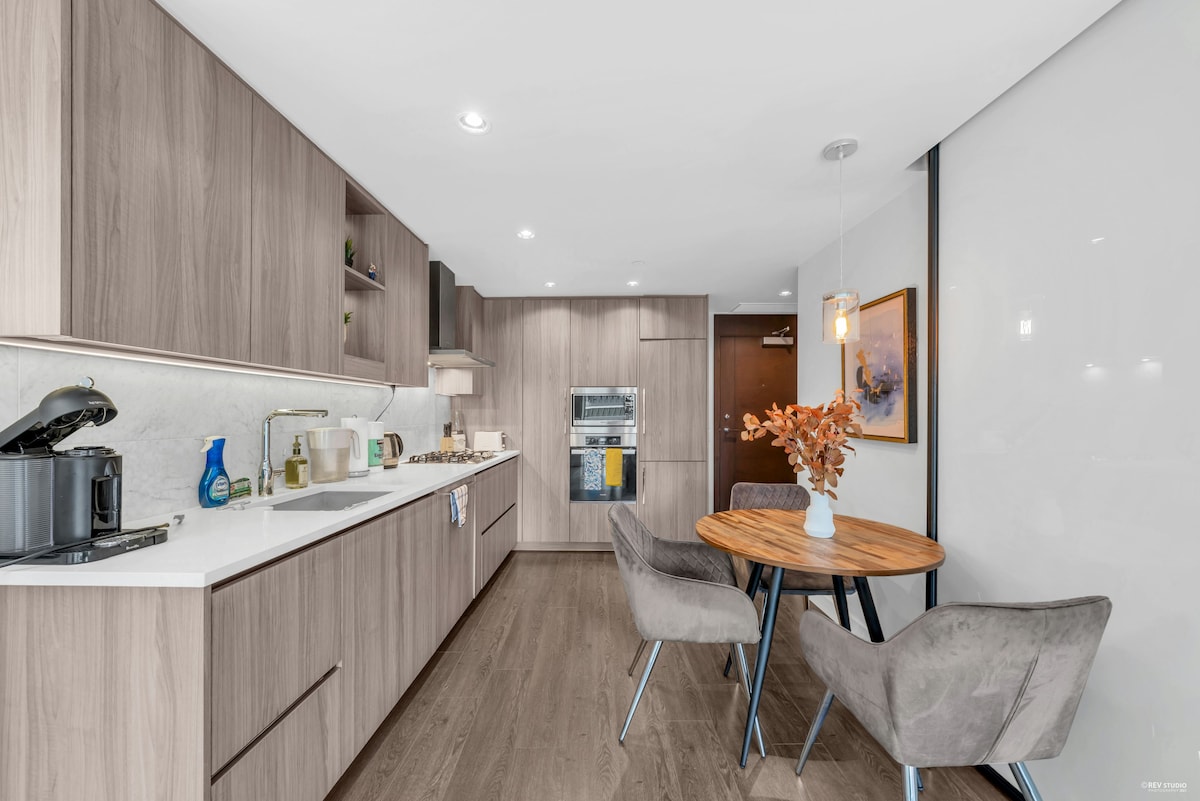 Vancouver'ın prestijli Coal Harbour bölgesinde, Stanley Park, Seawall ve Kongre Merkezi'ne sadece birkaç dakika mesafede şık ve konforlu bir kaçış yeri deneyimleyin. Dünya standartlarında yemek, kafe, alışveriş ve sahil manzarasına yürüyün. Öne çıkan özellikler arasında aydınlık güneş odası, tam donanımlı bir mutfak ve özel otopark bulunmaktadır. Bu büyüleyici ev, dinlenmek ve keşfetmek için mükemmel bir merkezdir. 6 kişiye kadar rahatça uyuyabilir; şehir merkezinin kalbinde unutulmaz bir konaklama arayan çiftler, aileler veya arkadaşlar için harika.