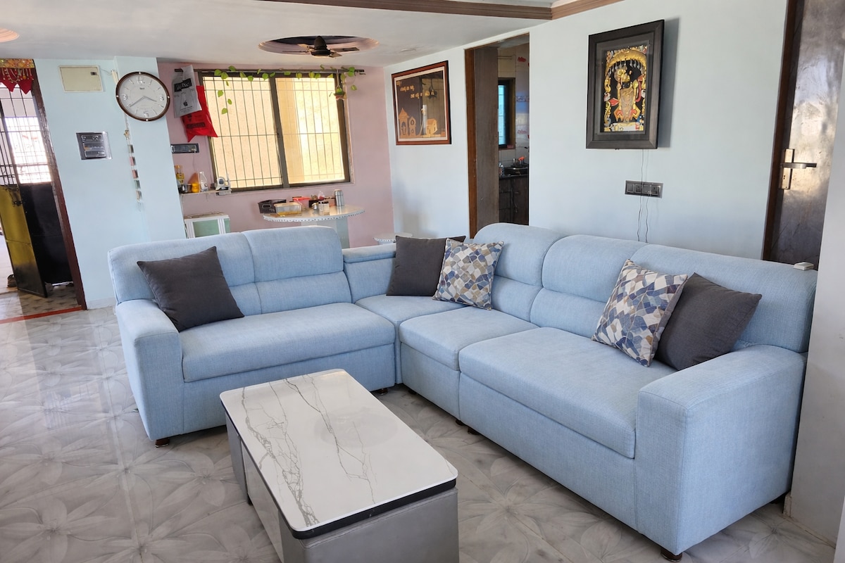 Stay in a peaceful and fully equipped 2BHK apartment conveniently located between Vapi and Daman, ideal for couples, families, and work travelers. The home offers AC in both bedrooms, fast Wi-Fi, a fully equipped kitchen, and a comfortable living room with TV, soundbar, and subwoofer so you can relax after a day out or work. Whether you're visiting Daman for the beaches or Vapi for business, this private apartment provides a quiet and comfortable place to stay with all essential amenities.