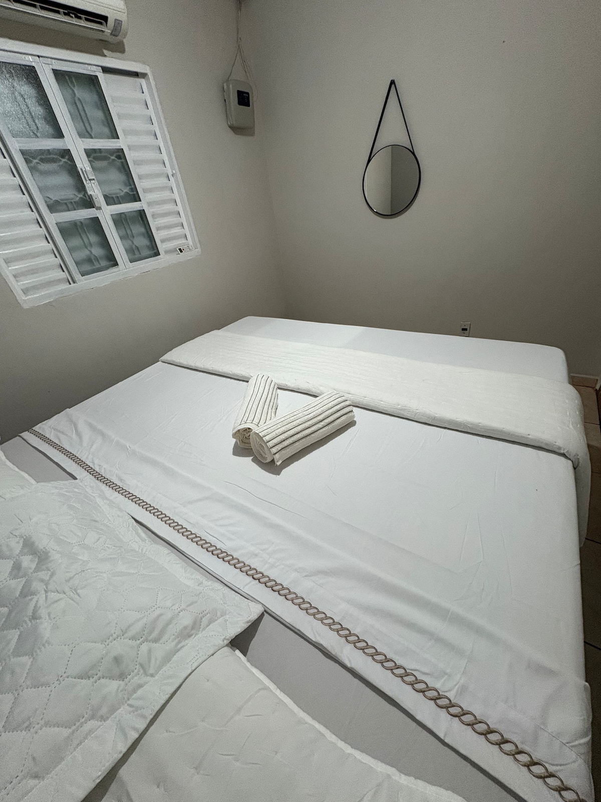 Bem-vindo ao Seu Lar Aqui 🏡 Um refúgio completo e aconchegante, a 15 min do aeroporto. Cama super king ortopédica e solteiro com infravermelho para descanso perfeito. Ambiente fresco e silencioso, com café, arroz, açúcar, sal, alho e café da manhã simples de boas-vindas. Inclui toalhas, sabonete e transfer no combinado antes da chegada. Tudo pensado pra você se sentir em casa e renovar as energias.