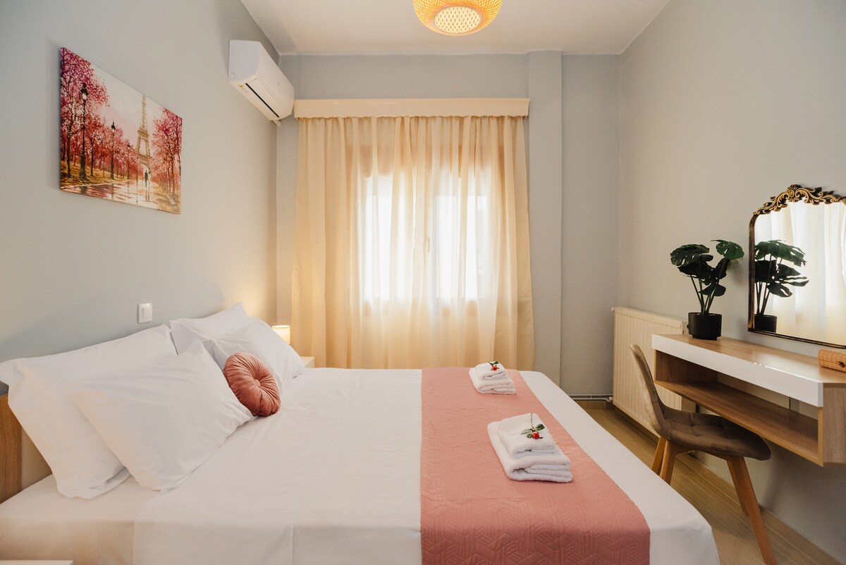 Daire, pitoresk Petriti köyünde bulunmaktadır. 1 yatak odası, oturma odası ve banyodan oluşmaktadır. Yatak odasında 1 çift kişilik yatak veya iki tek kişilik yatak bulunur ve mutfak tam donanımlıdır. Dairede düz ekran TV, ücretsiz kablosuz internet bağlantısı ve klima bulunmaktadır.