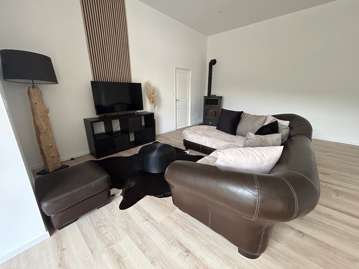 La Suit's Charmes sizi sıcak, kozalaşmış ve yatıştırıcı bir atmosferde karşılar. Hayal edin, dinlenin, kendinize bakın, hissedin, kucaklayın, tanışın, uzaklaşın… Kendinizi sevin… Gelin ve Suit'in cazibesinin tadını çıkarın! Belfort tren istasyonunun karşısında 75 m2 süit Jakuzi Sauna Kral Yatak 4K akıllı TV, Netflix, Orange TV Kablosuz internet bağlantısı İç mekânda şömine. Starry Sky XXL çok jetli duş (yağmur duşu bugüne kadar mevcut değildir). Tüm nevresimler temin edilir Olası seçenek: erotik salıncak/şampanya/parti aleti