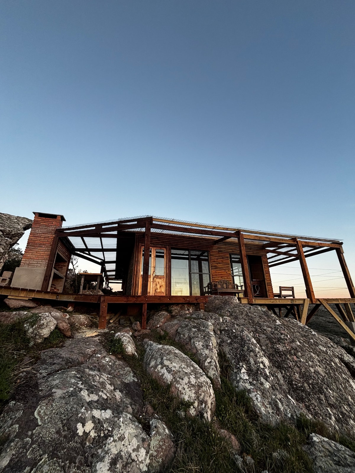 🏡 Cabaña ecológica en Aiguá para 6 personas. Rodeada de monte indígena, con vistas 360° a las sierras y cañada natural. Funciona con paneles solares y agua de pozo. Cuenta con cocina equipada, estufa a leña y cielos nocturnos increíbles. ❌ No apta para niños por las alturas. 🐾 Pet-friendly.