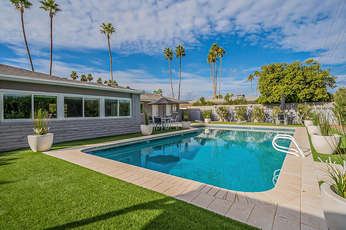 Old Town'dan birkaç dakika uzaklıktaki South Scottsdale'deki şık vahanızı keşfedin. 7 yataklı bu 4 yatak odalı inziva yerinde tüm yeni mobilyalar, her odada TV'ler, bilardo masası, atari oyunu ve hafızalı köpük yataklar bulunmaktadır. Tamamen yenilenmiş ev, oyunlar, barbekü, hamak, açık hava yemek masası, bolca oturma yeri ve elektrikli ısıtıcılı güzel bir dalış havuzu için geniş arka bahçeye yürürken göz kamaştırıcı bir gün batımı duvar resmi sunar (daha fazla bilgi için sorun). Bu dinlendirici inzivada harika zaman geçirin!