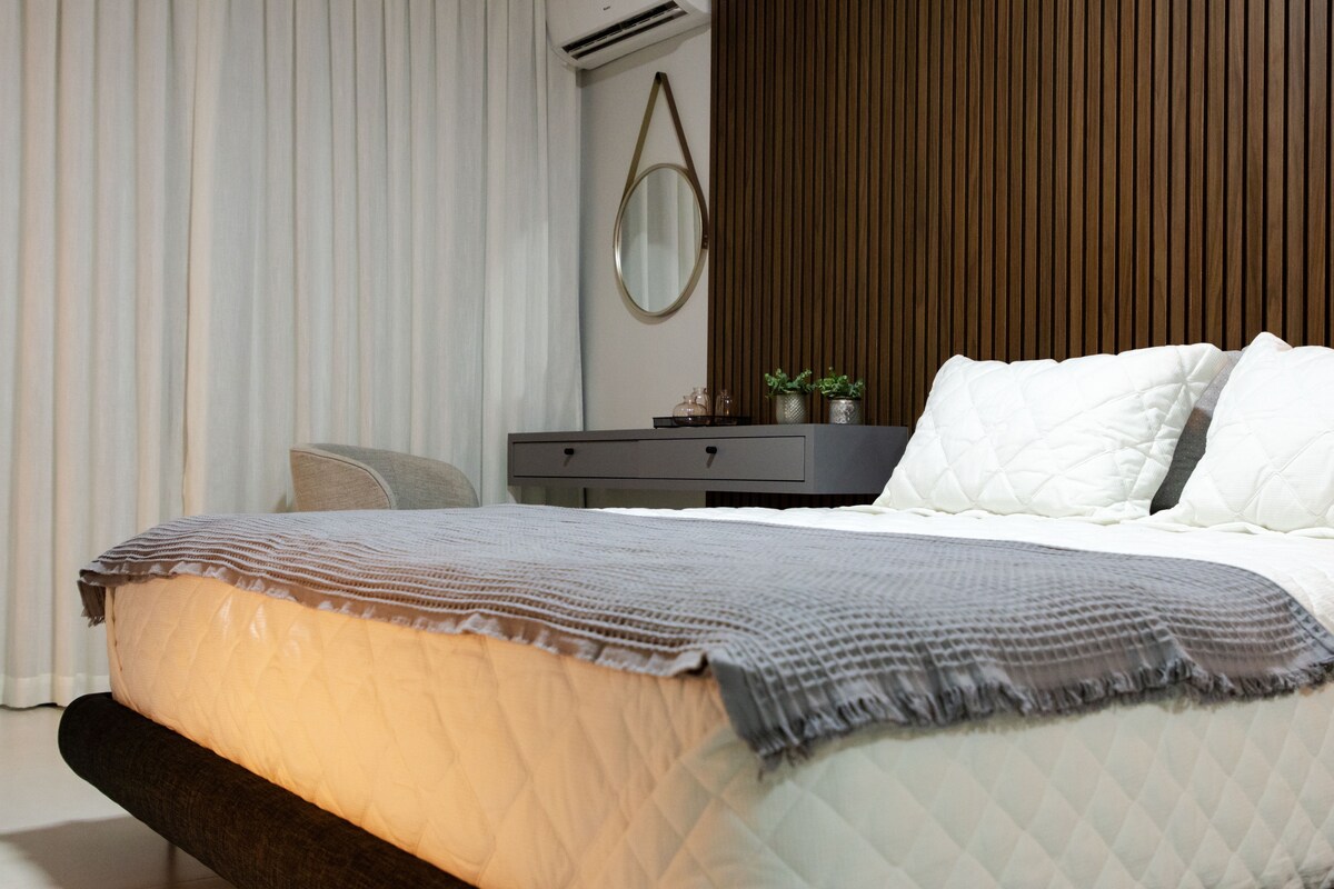 Gelin ve burada güzel zaman geçirin :) Sizi ağırlamaktan memnuniyet duyarız, evimiz Centro Sul'da, Parente süpermarketi ve Lago Dourado'nun yanında. Rahat, iyi havalandırılmış ve aydınlatılmış, barbekü, buralho ve havuzlu bir dinlenme alanına sahiptir; Oturma odasında kanepe ve Netflix'li akıllı TV bulunmaktadır; İki yatak odası, bir çift kişilik, klima ile donatılmış, ikinci yatak odasında tek kişilik yatak ve 2 ekstra tek kişilik şilte bulunmaktadır; Donanımlı mutfak ve 1 banyo.