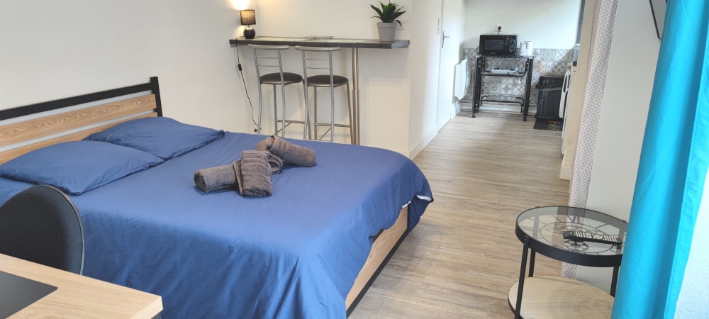 Futurostudio Futuroscope'a hoş geldiniz! Olağanüstü evrende kiralık yer arayan turist veya profesyonel, Futuroscope'daki EŞSİZ stüdyomuzun cazibesine kapılın! Bir stüdyo veya otel odasından çok daha fazlası olan PACMAN evrenindeki stüdyomuzda konaklamanızı uzatın! Teknopole'un göbeğinde yer alan, Futuroscope'a 8 dakika yürüme mesafesindeki bu stüdyo, 1 ila 4 kişi için özgün bir konaklama için size tüm konforu sunacak! Nevresim takımları ve banyo havluları verilir.