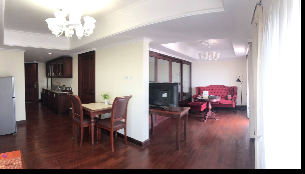 Ce logement élégant se situe à proximité de destinations incontournables. A 2 pas du célèbre monument de la victoire Patuxay il est facil de se promener dans ce quartier entouré d embassades. De plus le petit déjeuner est inclus