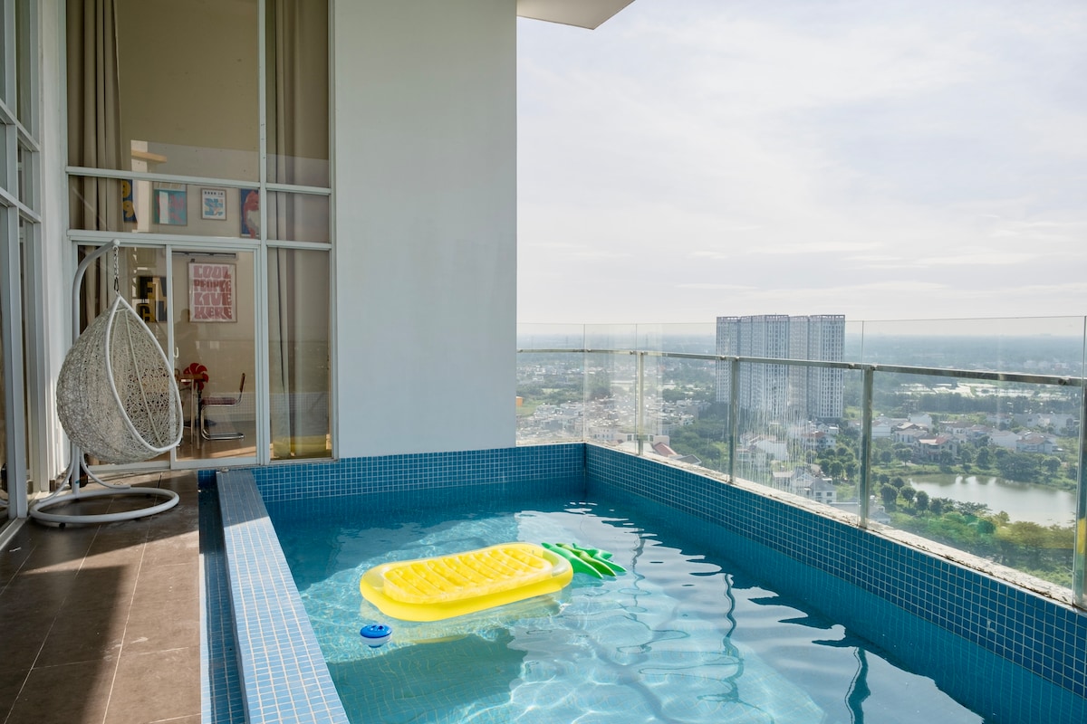 Geniş Dubleks | 4 Ebeveyn Banyolu Yatak Odası | Özel Çatı Havuzu HORIZON HAVEN Evimiz, 8 misafir ve çocukları rahatça ağırlayan 2 katlı bir süittir. Keyfini çıkarmanız için kendi girişi, havuzu, bahçesi ve mutfağı vardır. 7. Bölge'de sessiz, lüks bir semtte bulunan dubleks, sadece 1 başka ünitenin bulunduğu bir binada yer alıyor. Huzurlu bir parka ve manzaralı bir ekolojik göle adım atın. Yürüme mesafesinde çeşitli restoranlar, kafeler, kaplıcalar ve LOTTE süpermarket bulabilirsiniz.
